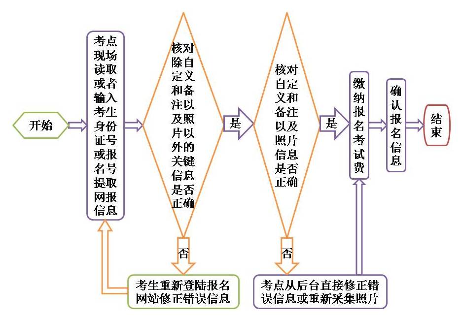 准备考生本人近期正面免冠半身彩色证件照(浅蓝色背景);成像区大小为48mm×36mm(高×宽),要求上下方向:头部以上空1/10,头颈部占7/10,肩身部占2/10;左右方向:肩身部左右各空1/10;采集的图像像素大小最小为192×144(高×宽),文件大小在20KB-200KB之间。照片不符合要求者,考点将不予以确认,考生将无法参加考试。然后,按照下列流程,开始网上报名。