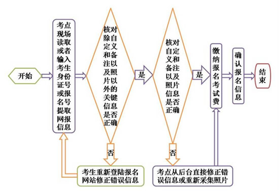 第一步:考生网上填报。准备本人正面免冠电子版近照(规格:像素最小为192×144(高×宽),大小20KB-200KB以内,浅蓝色背景),在任意一台互联网终端(电脑、PAD、手机等)均可完成填报操作。照片不符合要求者,考点将不予以确认,考生将无法参加考试。然后,按照下列流程,开始网上报名。