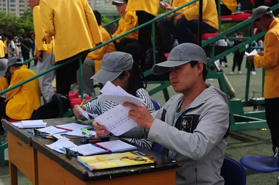 运动会期间,学生志愿者是另一道靓丽的风景线,他们站在幕后,为赛场上的健儿们默默服务着。生命科学学院高共宁同学说:“我们主要负责运动员号码牌制作和需用物品的购买、分发工作,虽然工作忙碌琐碎,但是为运动会贡献自己的力量就是一种收获,就是一种自我历练。”