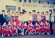 现就职于内蒙古师范大学新闻传播学院。(图为当时的西北师大女足:前排左四为额尔德尼其其格)