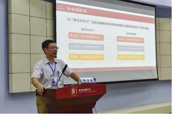 杨宗凯教授作了题为《教育信息化全面推动教育现代化:教育技术学专业的使命与担当》的大会主题报告。科大讯飞教育事业群副总裁王卓博士、成都市教育局副局长赖石梅高级教师、浙江省教育技术中心主任施建国高级教师分别从联网教育企业发展、区域教育信息化发展对教育技术学专业人才需求的角度做大会专题报告。华南师范大学教育信息技术学院院长黄慕雄教授以《产学研协同创新与教育技术学科专业发展》为题做了大会交流报告,介绍了华南师范大学教育技术学专业建设和人才培养方面的经验。
