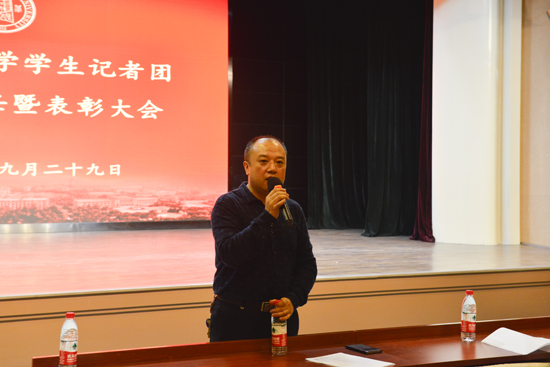 “新老交替,薪火相传,学生记者团已经成立22年了,从这里走出了一大批优秀的媒体人。希望你们立足专业,靠实责任,在各媒体平台上全面锻炼和提高自己,取得丰硕的成果。” 党委宣传部部长雷鸣用三个生动的故事,为新一届学生记者鼓劲,希望大家都能成为《致加西亚的信》中的罗文上校,无论是在工作中,还是生活上,都能执着地去做好每一件事情。