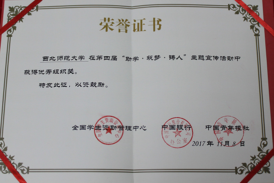 西北师大学子获全国第四届“助学•筑梦•铸人”主题征文二等奖