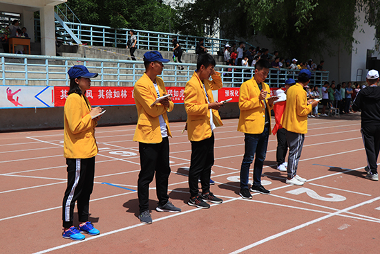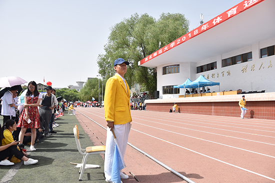 总裁判长张广林老师每天在主席台上关注着赛场,不断对工作人员反映上来的各种状况做出处理与裁决。今年是张广林第九年担任校运会总裁判长,他的首要职责是督促裁判员,确保比赛的公平公正。“对于裁判员,最重要的就是十六字方针:严肃认真、公正准确、谦虚谨慎、团结协作。”张广林说,这十六个字是对裁判员态度和业务能力的双重要求。赛场上的情况瞬息万变,裁判员在保证公平公正的同时,还要对所有突发状况及时准确地做出判断。
