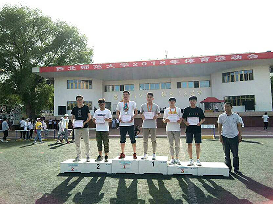 准备,起跑,冲刺!11秒67后,2014级物理与电子工程学院物理学3班托合提阿吉率先冲过终点,捧得冠军奖杯。大二的时候,托合提阿吉就为自己设立了五连冠目标:在五年大学生活中(含一年预科),100米比赛中都要夺冠。“今天终于梦想成真,现在都不知道该怎么表达了,真的很高兴!”