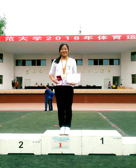腾飞、空中划过一个完美的弧形。在学生女子丙组跳远决赛中,物理与电子信息工程学院的石明以3.92的成绩脱颖而出。石明是研一的学生,本科时就非常喜欢体育运动,参加过跳远、跳高、三级跳、长跑、四百米栏比赛项目和各类团体项目;也曾被选拔进入赛前学校冬训、春训,接受过体校的教练的分项目训练。