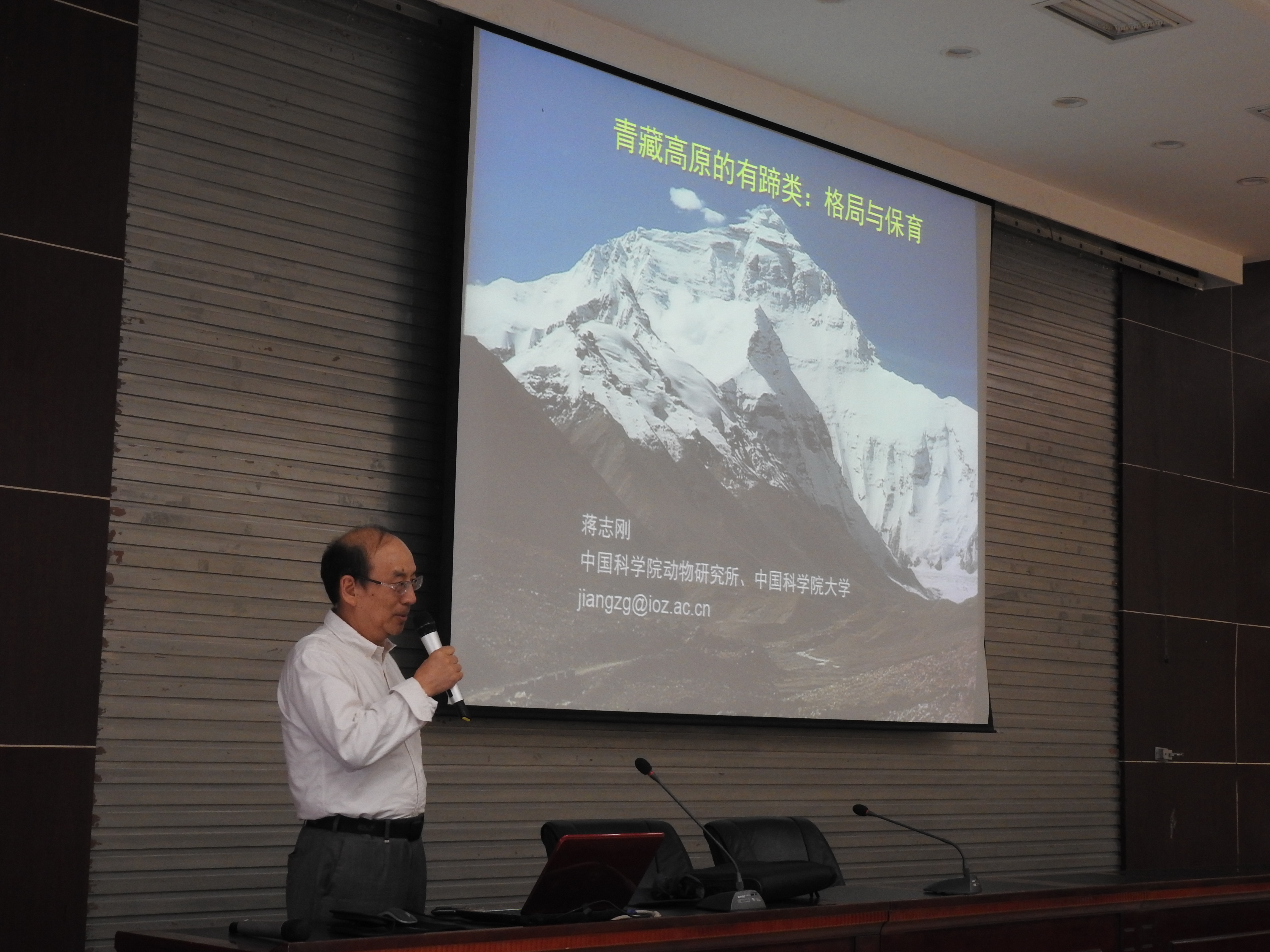 中国科学院动物研究所蒋志刚研究员、张建旭研究员、李义明研究员和南京师范大学生命科学学院杨光教授分别做了题为《青藏高原有蹄类:研究和保育》“Urine-borne male pheromones, sexual attractivess and fitness in murides》《外来两栖动物的入侵过程:野生种群建立、分布区扩展和危害》《鲸类次生性水生适应机制:从基因到基因组》的大会报告,来自埃及的博士后Ibrahim做了题为《Comparison of spatial learning and working memory in plateau zokors(Eospalax baileyi) and laboratory rats(Rattus norvegicus)》的学术报告。与会代表围绕西北生态过渡区动物研究与保护做了17个学术报告,并就动物形态学、系统学、生理学、生态学、地理学、行为学、基因组学、资源保护与利用和实验模式动物等领域的研究进展和最新成果进行了交流研讨,并对青年学者和研究生的学术报告进行了表彰。