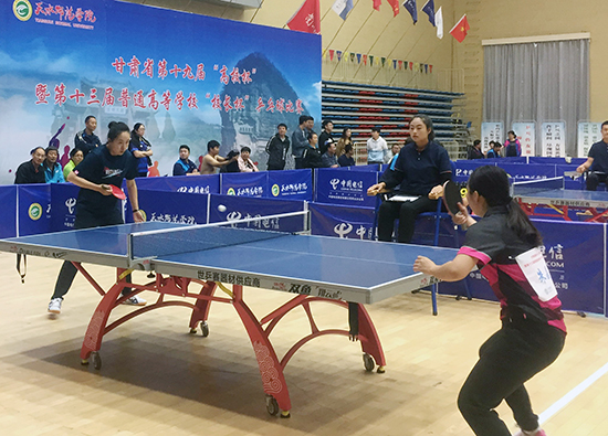 为贯彻落实《甘肃省关于强化学校体育促进学生身心健康全面发展实施方案的通知》精神,9月13日至17日,由教育厅主办、天水师范学院承办的甘肃省第十九届“高校杯”暨第十三届普通高等学校“校长杯”乒乓球比赛于2018年在天水举行。