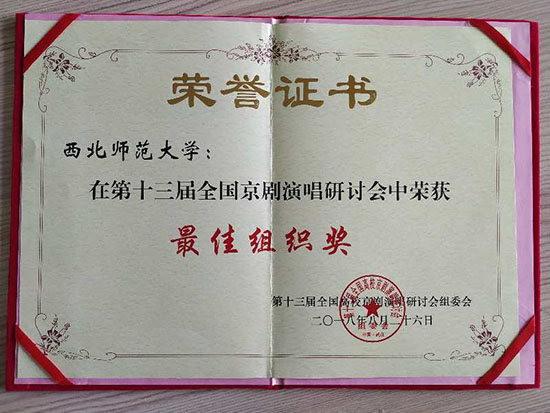 近日,第十三届全国高校京剧演唱研讨会在武汉理工大学落下帷幕,西北师大大学生京剧团荣获7项个人奖,学校荣获“最佳组织奖”。