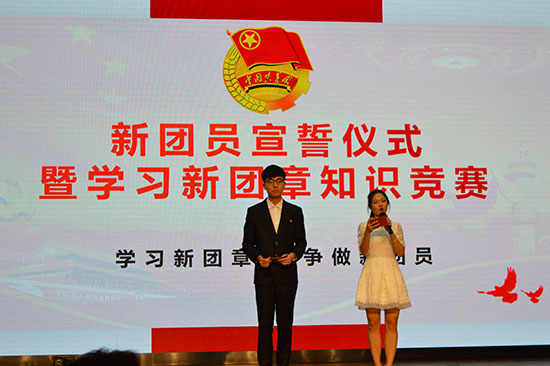 团委还组织开展了新团员宣誓仪式暨学习新团章知识竞赛活动,通过奏唱团歌、入团宣誓、佩戴团徽、颁发团证、新老团员发言、学习新团章等仪式,让新团员感受入团的庄严、神圣和光荣,牢记肩扛的责任和使命。
