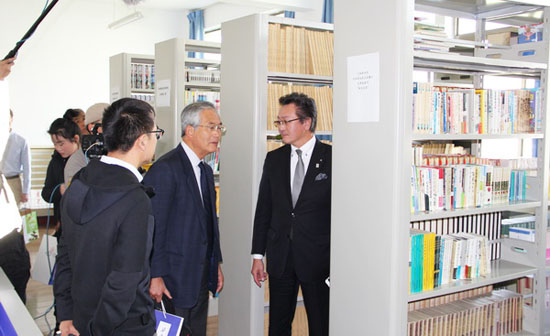 座谈会后,武田英文一行考察了西北师大外国语学院秋田文库和实景模拟实验室等教学设施。