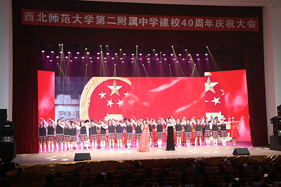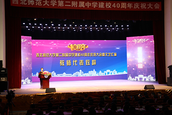西北师大二附中校长窦继红在讲话中介绍了学校历史沿革以及发展状况。他说,西北师大二附中创建于1978年,我国著名教育家、原西北师范学院院长李秉德先生担任首任校长。四十年来,二附中充分利用地处大学校园育人优势,秉承“严、勤、实、恒”的校训精神,以“引领甘肃基础教育发展、西部一流、全国有一定影响的精品学校”为办学目标,办学成绩显著。四十年岁月峥嵘,几代人躬耕树蕙。校庆是二附中办学品质的精彩展示,是二附中人对历史的尊重和对未来的庄严承诺。所有二附中人将在庆祝活动中收获成长的喜悦和精神的动力,前进路上一定披荆斩棘,再创佳绩。