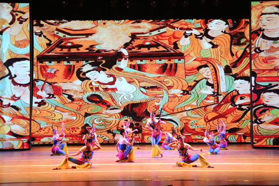 晚会上,师生表演了舞蹈《丝路天音》《扎西巴夏卓》等精彩节目,展示了敦煌学院的办学成就,举行了学生创业团队捐助的“念敦煌”创业孵化基金的启动仪式。