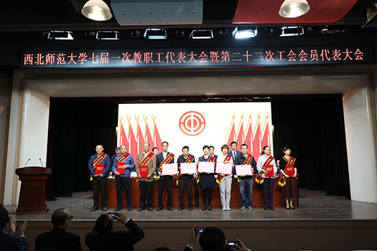在“五一”劳动节来临之际,为了进一步落实服务育人理念,加强服务保障队伍建设,提高服务保障水平,激励引导广大教职工不忘初心、立足岗位、务实干事、全员育人,西北师大工会开展了“服务之星”评选活动,对在服务一线全心全意为全校师生提供优质服务保障的员工进行表彰奖励,党委书记张俊宗,党委副书记刘玉泉,副校长张生勇、李朝东、李建民,纪委书记姚志宏在七届一次教代会暨第二十二次工代会闭幕式上为获得“服务之星”的个人颁发获奖证书。