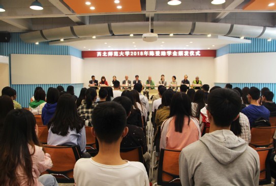 5月20日,2018学年陈登助学金颁发仪式在西北师大学生发展中心举行,西北师大副校长张生勇出席并讲话。甘肃省外办交流合作处(港澳事务处)负责人,西北师大党委学生工作部、港澳台工作办公室负责人及100名获助学生参会。