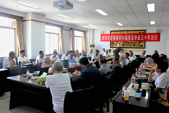 暑假期间,西北师大原物理系1979届、1989届和1999届校友分别返校,举行纪念毕业返校联谊座谈会。西北师大副校长董晨钟,国际合作交流处、校友办公室、学院负责人,教师代表,三届校友分别参加座谈会。
