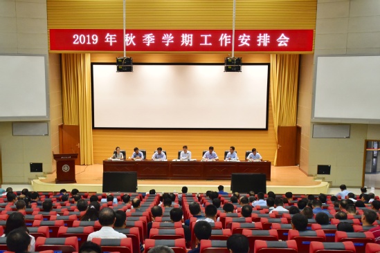 8月24日午,西北师大在新校区毅然报告厅召开2019年秋季学期工作安排会。党委书记张俊宗主持并讲话;校长刘仲奎对下半年重点工作进行安排部署;副校长董晨钟通报2019年假工作,副校长张生勇通报2019年附中、二附中考试升学及第四届甘肃省大学生运动会参赛情况,副校长李朝东通报2019年研究生招生情况,副校长李建民通报基建及基础设施维修改造情况,副校长邓小娟通报2019年本科生招生情况;校领导刘玉泉、田澍、姚志宏出席会议;全校各学院班子成员、系所中心主任、办公室主任、各单位班子成员,机关全体干部参加会议。