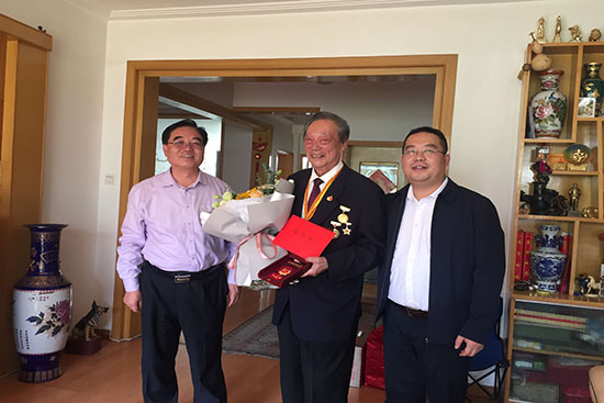 9月29日下午,甘肃省教科文卫工会主席刘虎林、副主席龙青松一行来到西北师大,专程慰问全国先进工作者王云普教授,并为他送上庆祝中华人民共和国共和国成立70周年纪念章,带来了党和政府的关怀问候。