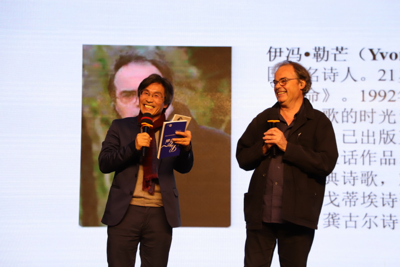 勒芒以一首法译诗歌为引,表达了他对中国诗歌的热爱,介绍了自己在法国诗歌创作过程中的趣事,提出“生命的理由是为了诗歌”;树才通过自己学习法语的经历告诉大家,语言才是诗歌真正要去的地方;高尚介绍了圣琼•佩斯、克洛岱尔、谢格兰等法国诗人,阐述了诗歌应在语言中涅槃、在语言中再生。