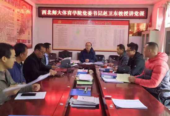 在张坪村村委会举办的体育器材捐赠仪式上,工作组为村上赠送了兵乓球台、羽毛球柱等体育器材。在村委会会议室,体育学院党委负责人结合习近平总书记视察甘肃重要讲话精神,给村委会班子成员、驻村干部上了一堂形势政策的党课,并与驻村干部、村委会成员进行了深入交流,了解了村民生产生活情况和村集体经济产业开展、推进情况等。