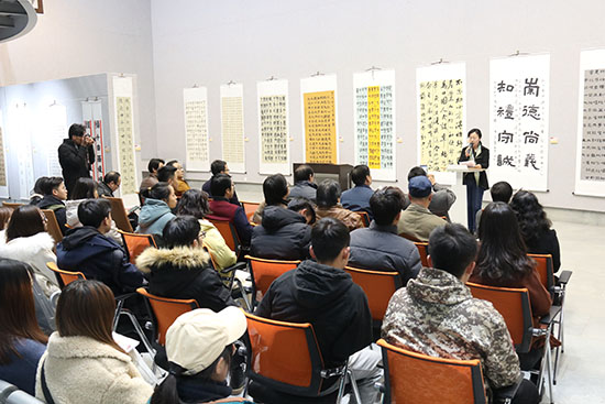 此次展览集中展示了美术学院本学期以来设计系、书法系课程思政教学的阶段性成果,展览内容紧紧围绕“讲中国故事”“谱写新时代”主题,分别以设计与书法等艺术形式呈现了美术学院师生对“不忘初心,牢记使命”主题教育的学习、领悟、认识以及如何将思想政治教育、德育教育、审美教育与课程知识有机融合的探索,真正使主题教育走深、走心、走实。