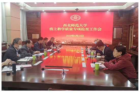 为持续加强线上教学质量监控与督导工作,提高教学质量,4月24日下午,西北师大召开线上教学质量专项检查工作会,教学质量监控处负责人主持会议,学校教学督评委员,教务处、网络安全与信息化办公室负责人参加会议。