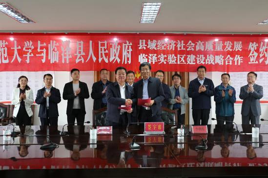 5月12日,西北师大副校长李朝东带领社会合作服务处、科学研究院、化学化工学院、旅游学院、教育学院等单位负责人,赴张掖市临泽县参加合作共建张掖市县域经济社会高质量发展临泽实验区项目签约活动。临泽县委、县政府、县政协主要领导及临泽县主要单位负责人出席签约仪式。