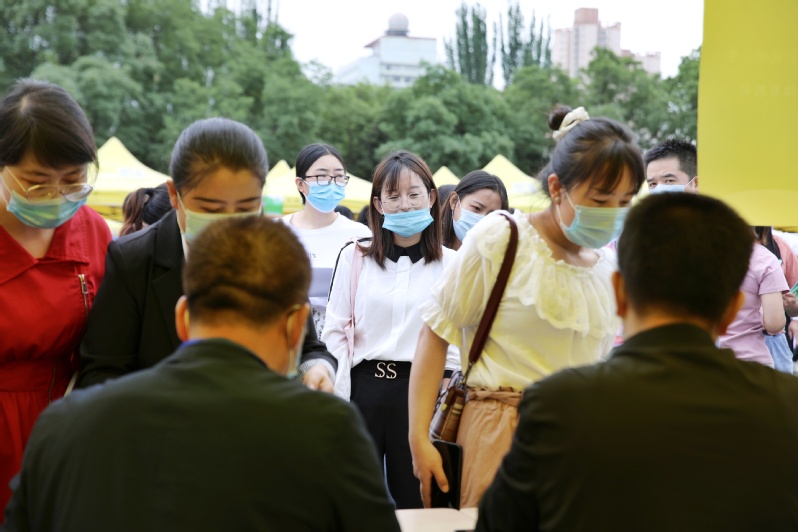 西北师大2020届马克思主义学院毕业生呼泰鸿说:“学校举办的首次夏季双选会参会单位质量高,防疫措施严密,在我们即将毕业离校之际举办本次活动非常及时,我已经向几家用人单位递交了简历,希望在面试环节能够有收获。”