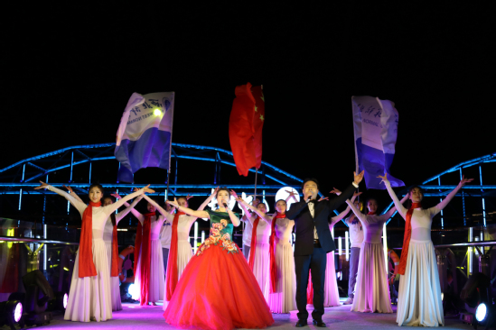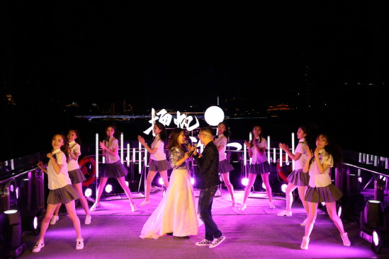 在主会场与分会场同步演唱歌曲《我的祖国》中,“追梦号”游轮在两岸灯火的映照下返航,2020届毕业生特别节目落下帷幕。