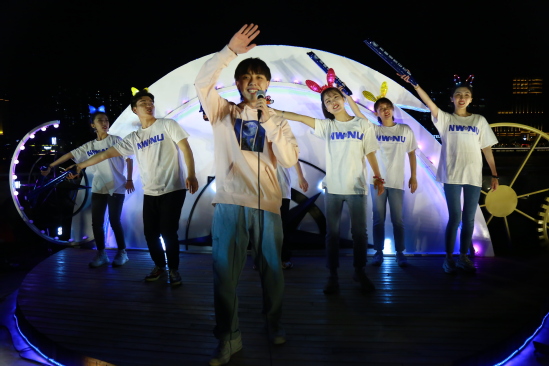 黄河岸上,微风徐徐。一艘游轮伴随着两岸灯火缓缓行驶在黄河水面。与此同时,黄河风情线上,水车博览园的在水一方分会场、亲水平台的城市指南分会场、兰州城市规划馆的城市之光分会场与黄河游轮主舞台同步响起熟悉的旋律《我的校园在黄河岸上》,送给2020届毕业生的特殊毕业晚会在此拉开帷幕。视频节目《武汉伢•师大人》向奋战在全国疫情防控一线的战疫英雄们致以崇高的敬意和感激;2020年毕业季主题曲《夏次见》以说唱形式带领2020届毕业生回顾四年的求学时光;视频节目《光阴的故事》讲述了2020届毕业生在校求学的感人故事;歌曲联唱《毓苑离歌》将一首首动人的旋律和一句句衷心的祝福,印刻在了每位学子的心间;全体辅导员在离别之际为毕业生送上暖心视频节目《西师毕业disco》,表达了辅导员老师们对毕业生的殷切嘱托;歌曲《爸爸妈妈》,唤起了同学们心中对于父母的感恩之情;视频教师寄语《你们的时代》,表达了老师对于毕业学子的美好期望;歌曲《永远的诉说》,表达了毕业生和广大学子们对师长的感恩和对母校的不舍。
