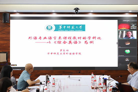 研讨会上,教育部高等学校英语教学指导委员会秘书长、湖南师范大学外国语学院院长曾艳钰教授,北京师范大学外国语学院程晓堂教授,西南大学外国语学院院长文旭教授,东北师范大学外国语学院院长林正军教授,华中师范大学外国语学院院长罗良功教授,华东师范大学外国语学院副院长杨延宁教授等15名国内知名外语专家和学科负责人作了精彩的学术报告,大家就外语专业教材建设存在的问题与对策、课程思政在外语专业教材建设中的落实、外语专业教材建设的学科化、全球治理人才培养对外语专业教材建设提出的新要求、外语教材建设中的家国情怀培养等问题进行了深入的探讨;西北师大曹进教授、俞婷教授在研讨会上作主旨发言,探讨了外语专业教学与教材建设的一体融合问题与教材编写中的选材问题。