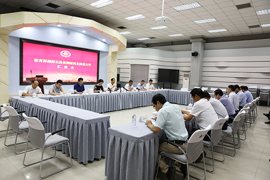 8月3日,教育部副部长孙尧,教育部职业教育与成人教育司司长陈子季,国家开放大学党委书记、校长荆德刚,教育部民族教育发展中心副主任胡炜、学校规划建设发展中心副主任陈建荣一行在甘肃省教育厅党组书记、厅长王海燕和职业教育与成人教育处长李长锋陪同下莅临西北师大调研指导,听取学校工作汇报。党委书记张俊宗主持汇报会,校长刘仲奎,校领导田澍、董晨钟、马庆、张生勇、李朝东、李建民、王顶明陪同调研。学校相关职能部门和学院负责同志参加汇报会。