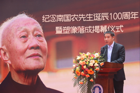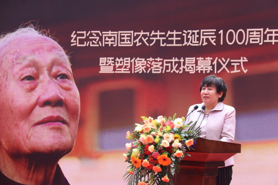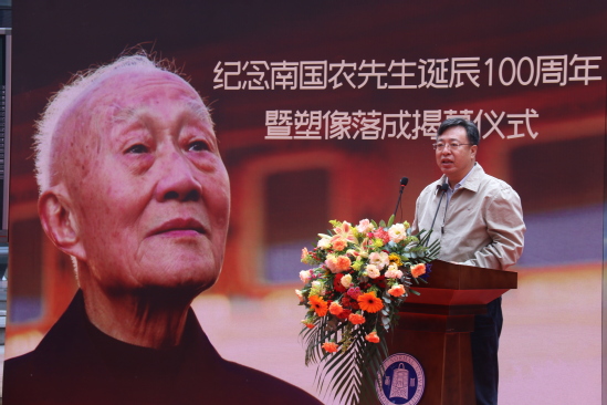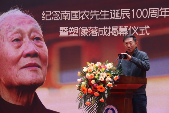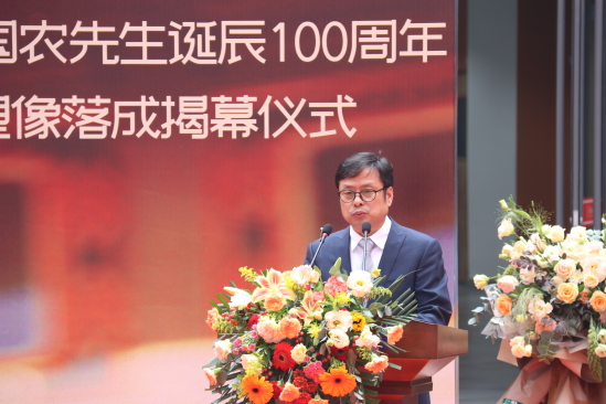 张俊宗在致辞中表示,值此南国农先生百年诞辰之际,我们怀着无比崇敬、无比激动的心情,在先生辛勤耕耘、无私奉献了一生的西北师大校园,举行南国农先生塑像落成揭幕仪式。我们要缅怀先生教书育人、著书立说、为我国教育信息化发展所做出的卓越贡献;要景仰先生热爱祖国、扎根西北、光明磊落、高风亮节的崇高品格。先生严谨求实的治学态度、勇于创新的学术思想、著作等身的学术贡献、率先垂范的工作作风、诲人不倦的高尚情操、宽厚慈爱的长者风范为我们树立了为师的楷模、人生的典范,永远值得我们学习和敬仰!
