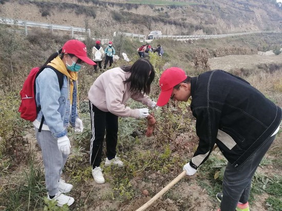 仪式后,经济学院学生分批次赴黄峪镇宋家沟、陶家沟、张家岭村开展采摘运输苹果、采挖百合、深翻田地、采挖土豆、采挖中药材等劳动实践活动,并在农业技术人员的指导下,深入体验农业生产。除此之外,经济学院学生还发挥自身专业优势,结合当地实际情况和贫困群众实际需求,围绕义务劳动、心理健康等内容开展建档立卡贫困户关爱活动,助力脱贫攻坚。