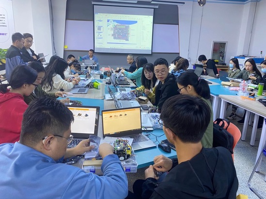 在为期7天的培训中,学员们参与包括国内外创客文化分享、编程入门、开源硬件的基本学习与使用、数字化加工工具使用、无人机程序控制、设计思维、PBL课程设计教学、创客马拉松活动体验、智能机器人竞赛体验、STEAM创新教育社会实践等为主要内容的学习实践。