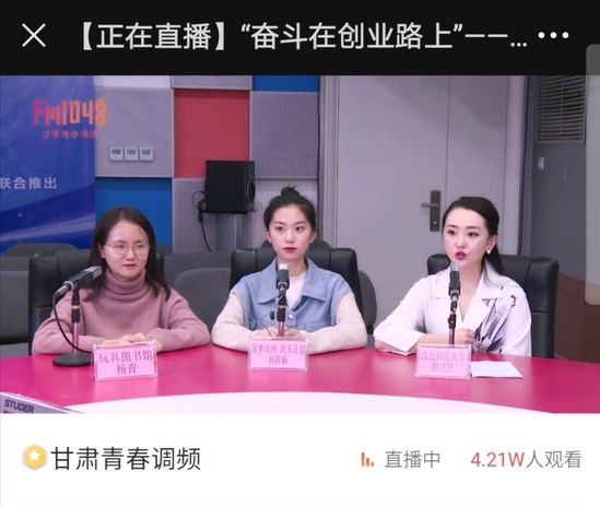 西北师大学生优秀创新创业项目代表于10月21日受邀参加“奋斗在创业路上”——融媒体直播访谈活动。FM104.8甘肃青春调频电台、视听甘肃APP、抖音APP进行了同步音视频直播。