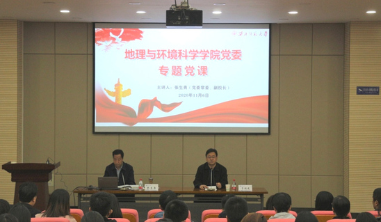 116日下午,西北师大副校长张生勇应邀为地理与环境科学学院全体学生党员宣讲十九届五中全会精神,并作题为《中国梦——中华民族的共同理想》的主题党课。学院全体学生党员150余人聆听了党课。