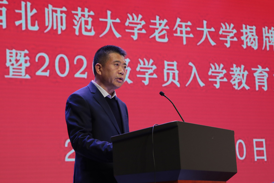 西北师大离退休职工党委委员、教协理事、老年大学学员代表田玲在发言中表示,我们将在老年大学学习期间,安心学习、增长见识、陶冶情操、提高素质、发展友谊,加倍珍惜来之不易的学习机会,严格遵守学校的各项规章制度,加强自我教育、自我管理、自我服务、自我监督,将老年大学建设成为我们文明、和谐、温馨的精神家园。