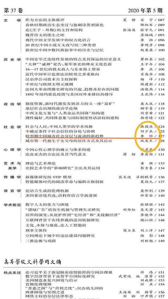 近日,西北师大社会发展与公共管理学院李怀教授在《广东社会科学》2020年第4期发表的论文“转型期中国城市社会分层与流动的新趋势”(全文18000字),被《新华文摘》2020年第22期全文转载,同时还被《高等学校文科学术文摘》2020年第5期全文转载。
