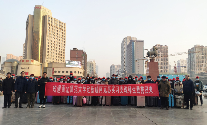 1月1日至4日,西北师大2020年秋季学期赴新疆阿克苏实习支教的488名师生完成实习支教任务,分4批顺利返回学校。教务处、党委学生工作部、文学院、历史文化学院、马克思主义学院、外国语学院、数学与统计学院、物理与电子工程学院、化学化工学院、地理与环境科学学院、教育技术学院、旅游学院负责人赴火车站迎接。