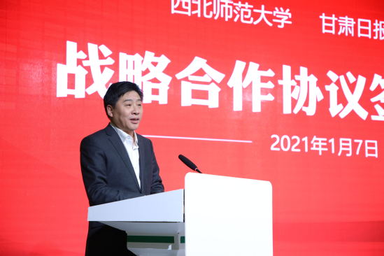 张俊宗在致辞中表示,甘肃日报是甘肃省委机关报,甘肃日报报业集团、甘肃新媒体集团是我省宣传战线最具权威性、指导性的主阵地、主渠道。近年来,集团着力扩充内容、调整结构、改进设计、提升品质,在做足、做深、做好本省新闻的同时,紧跟融媒体时代发展变化,形成了鲜明的地方特色和高远的文化品位,在服务经济社会发展大局中彰显了党报党媒的强大影响力和公信力,在深入了解了甘肃日报社发展历程以及在媒体融合时代的做出的突出贡献后,感受到异彩纷呈、时不我待、催人奋进。他说,站在新的历史起点上,双方的合作交流恰逢其时,我们多了一个携手奋进的伙伴,让我们以这次签约为新起点,以协议的签署为新纽带,促进了解,加深友谊,共同扬起合作之帆,协同创新、共谋发展。