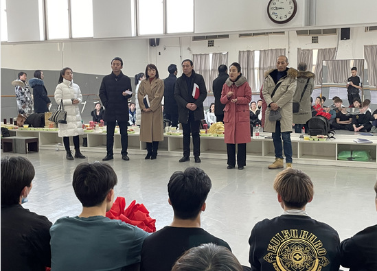出发前,西北师大副校长邓小娟慰问全体演职人员。邓小娟说,“百花迎春——中国文学艺术界2021春节大联欢”是全国文艺界的盛典,西北师大舞蹈学院学生此次受邀参加节目录制,既体现了上级部门对西北师大教育教学成果的肯定,又展示了西北师大学子的精湛技艺和艺术表现力,同时也搭建起用人单位与学生的良好交流平台。从学校小舞台走向央视大舞台,是社会对我校学生专业素质和舞台演出水准的认可,也是对我校舞蹈学院一专多能复合型舞蹈艺术人才培养理念的认可。