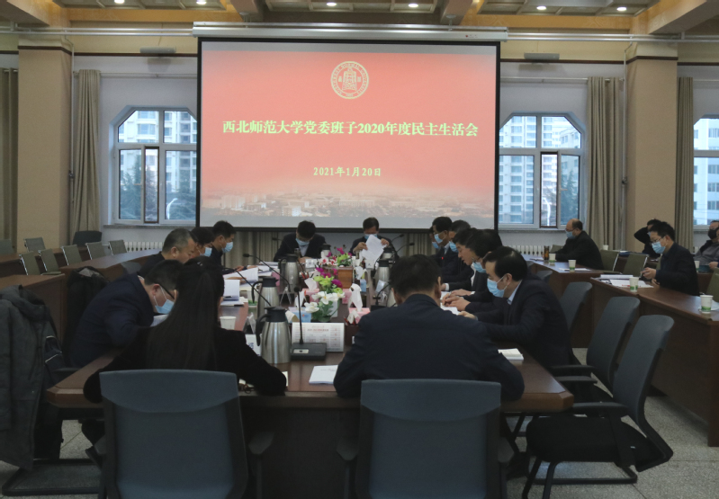 按照省委统一安排,1月20日,西北师大召开2020年度党委班子民主生活会。会议围绕认真学习习近平新时代中国特色社会主义思想,加强政治建设,提高政治能力,坚守人民情怀,夺取全面建成小康社会、实现第一个百年奋斗目标的伟大胜利,开启全面建设社会主义现代化国家新征程的主题,紧密联系党委班子工作,联系党委常委个人思想和工作实际,进行自我检查、党性分析,严肃开展批评和自我批评。