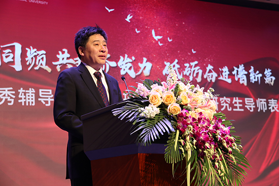 张俊宗在讲话中代表学校向受表彰的辅导员、班主任、研究生导师表示热烈的祝贺!向长期以来从事学生工作,关心、支持、指导学生工作的老师们表示诚挚的敬意和衷心的感谢!他表示,2020年,面对突如其来的新冠肺炎疫情,全校上下坚决贯彻党中央和省委省政府决策部署,迅速反应,果断行动,奋力扛起校园疫情防控阻击战的政治责任,确保了全校师生生命安全和身体健康,维护了正常的教学生活秩序。在疫情常态化防控的背景下,学生工作立足“大思政”格局,在精准防疫、思想教育、日常管理、文化育人、社会实践、国防征兵、心理健康教育等方面凝聚着大家的辛勤付出,我们守住了安全底线,扛过了疫情大考,交出了满意答卷。正如辅导员汪海燕讲到不完美的行动胜过完美的等待,辅导员文桃讲的虽然不能做到万事都能,但一定会竭尽所能。我们还有许多班主任、研究生导师,拥有了学生取的“爱称”,这是学生给予老师的最高评价。他们之所以能拥有这样的评价,是由像莫尊理教授这样永远都愿意做学生心中的朋友,像胡好老师与学生的距离比逗号还要近,像蒋玲讲的4K心理办法等一批受学生爱戴的老师用心、用情、用爱构筑起了学生工作的美丽风景线,而这其中彰显的正是习近平总书记对“四有”好老师的要求,也是西北师大“如师如父”的优良传统。