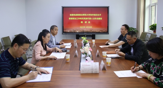 5月18日下午,省委统战部五处处长马亚雄一行三人来西北师大,就学校党外知识分子思想政治工作和无党派代表人士队伍建设进行专题调研。西北师大副校长邓小娟主持会议并讲话。