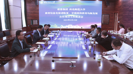 5月19日上午,西北师大召开教育信息化促进临夏州、甘南州和宕昌县教育均衡发展合作项目工作推进会。副校长董晨钟出席,社会合作服务处、教务处、网络安全与信息化办公室、国有资产管理处、音乐学院、舞蹈学院、体育学院、外国语学院、美术学院、教育学院、教育技术学院相关负责人和联想集团项目负责人、小鱼易连项目负责人参会。