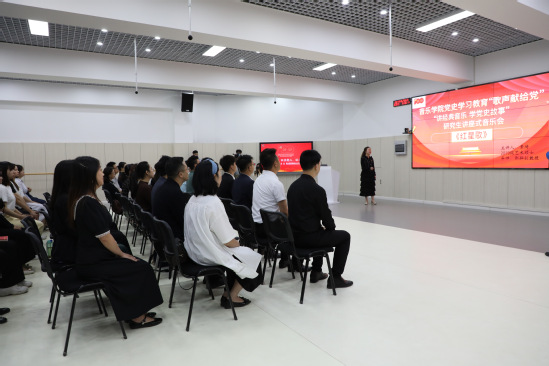 指导组一行在美育中心观摩音乐学院教工第一党支部“音乐中的党史”开展情况。