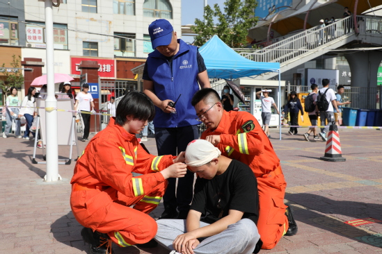 张生勇宣布演练开始后,应急疏散演练严格按流程开展。兰天学生公寓6号楼学生和兰天学生公寓学生引导员在应急指挥队伍的组织下,有序从楼内撤离,迅速向安全地点疏散。应急救援队队员现场为师生演示、培训了应急避险、伤员救援、紧急包扎等自救、互救能力。演练工作负责人对演练工作做了点评,就相关安全事项作了进一步强调。