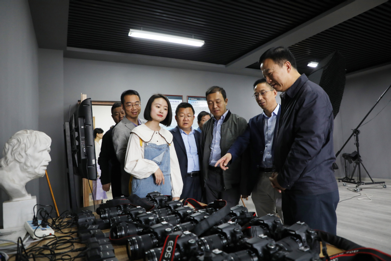 李万红一行先后深入学校信息化展示大厅、融媒体中心、传媒学院、甘肃省教育网络舆情监测中心、网信办及学生自主学习空间等地,深入了解学校媒体融合发展和传媒学院(新闻学院)教育教学工作情况。