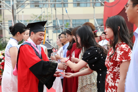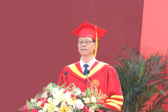 教师代表、心理学院院长赵鑫教授在发言中希望毕业生在快乐工作,幸福生活的同时,永怀“祖国如有难,汝应作前锋”的家国情怀,努力成为各行各业的精英,国家和民族的栋梁,始终坚守爱国的赤子之心,用开阔的视野,去瞭望前进的方向;用创造的双手,去书写国家的未来;用挺拔的脊梁,去撑起民族的希望;用最炽热的感情去爱这片土地,将自己的奋斗人生与民族和国家的命运紧密相连,欣逢盛世,当不负盛世,以吾辈之青春,捍卫盛世之中华!